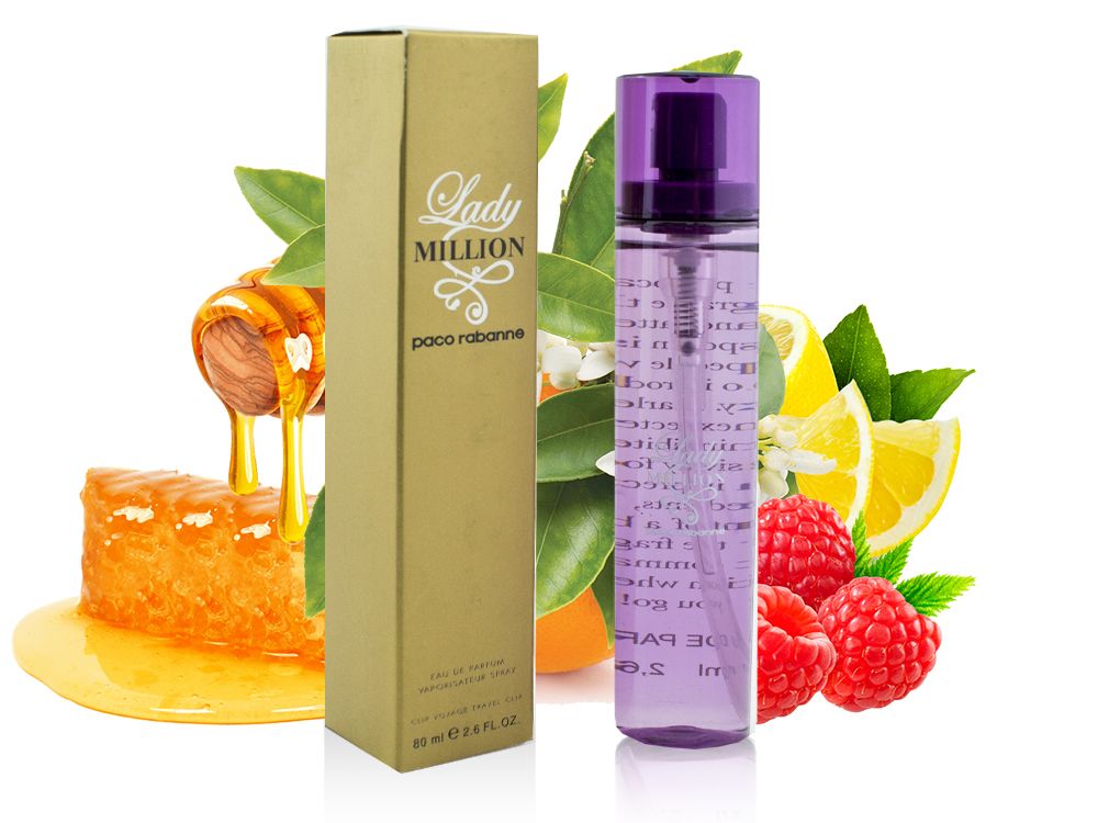 Женский фруктовый цветочный аромат Lady Million выпущен парфюмерами: Энни Флипо, Биатрис Пико, Домиником Ропионом и Бруно Джовановичем для испанского бренда моды Paco Rabanne в 2010 году. Этот роскошный, немного свежий, теплый, манящий, волнующий, насыщенный, дерзкий, стойкий, в меру сладкий фруктово-цветочный аромат с красивым шлейфом от Paco Rabanne заставляет чувствовать себя уверенной и энергичной, придает сил справиться с любыми делами. Композиция Lady Million состоит из малины, нероли, цитрусов, цветов апельсина, гардении, жасмина, белого меда и пачули. Парфюм можно носить и в дневное время, и как вечерний аромат, лучше всего раскрывается зимой и холодной осенью.